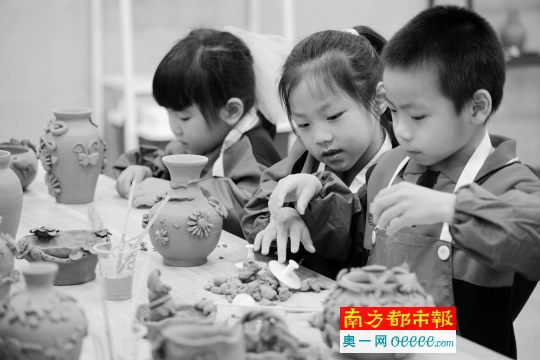 4月26日,南風(fēng)古灶陶藝培訓(xùn)基地開業(yè)。小學(xué)生在體驗(yàn)陶藝創(chuàng)作。南都記者 鄭仲 攝