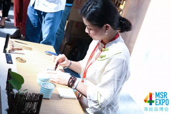 本屆海絲品博會(huì),永春香道館位于展館中庭舞臺(tái)旁。展會(huì)現(xiàn)場(chǎng),絡(luò)繹不絕的觀眾來(lái)到永春香道館詢問(wèn)產(chǎn)品、欣賞香道表演。