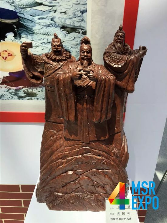 除了雕刻水平高,造型也別出心裁。例如,木雕作品《同心酒》選擇黑檀作為原料,使得成品增添一種厚重的歷史感,更能呈現(xiàn)劉關(guān)張?zhí)覉@三結(jié)義的義薄云天的情誼,表現(xiàn)中華民族的道德理想。