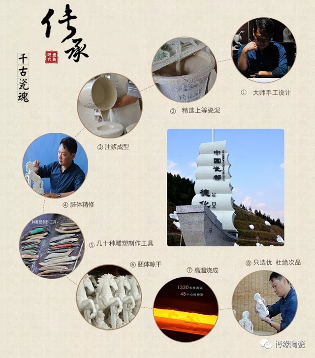 德化的陶瓷始于新石器時代,興于唐宋,盛于明清,現(xiàn)為世界最大的工藝陶瓷出口基地,2015年被授予“世界陶瓷之都”德化陶瓷手工制作技法獨(dú)特,技藝精湛,歷代瓷雕大師創(chuàng)作的作品被海內(nèi)外博物館廣泛珍藏,譽(yù)為“東方藝術(shù)精品”,德化白瓷品質(zhì)獨(dú)特,瓷質(zhì)“潔白溫潤、如脂似玉、精致典雅、晶瑩剔透”以高白度、高純凈度、高光澤度、高透光度在國內(nèi)瓷壇獨(dú)樹一幟,有“中國白”和“瓷壇明珠”只美譽(yù)。