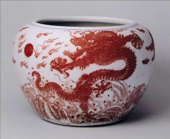 故宮博物院藏青花釉里紅雙龍戲珠紋缸