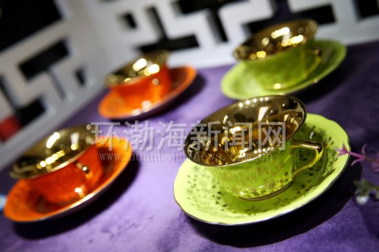 走進(jìn)展廳,簡潔大方的衛(wèi)生瓷、精美華麗的日用瓷、花樣繁多的建筑瓷、明凈素雅的藝術(shù)瓷,千余件陶瓷制品讓人目不暇接,深切地感受到了唐山陶瓷的魅力。在展廳中,一套紋飾精美的骨質(zhì)瓷制品十分顯眼,這就是在首屆絲綢之路(敦煌)國際文化博覽會(huì)中大放異彩,也是會(huì)議唯一的指定國宴用瓷——唐山紅玫瑰設(shè)計(jì)制作的“敦煌飛天”。