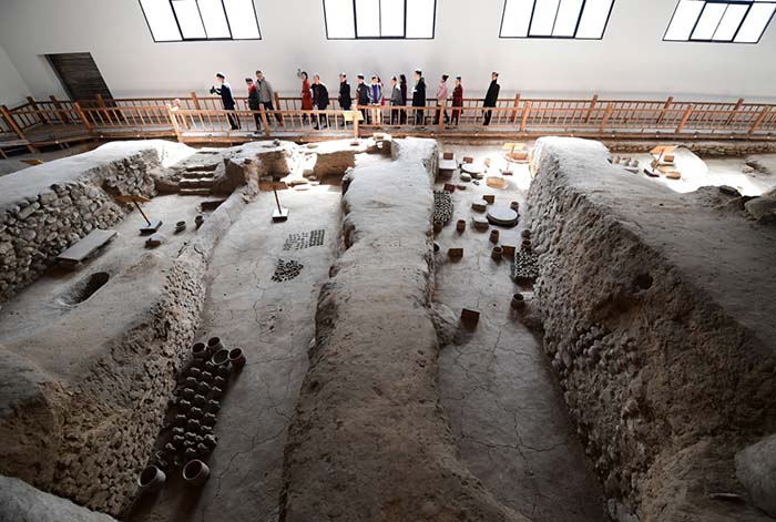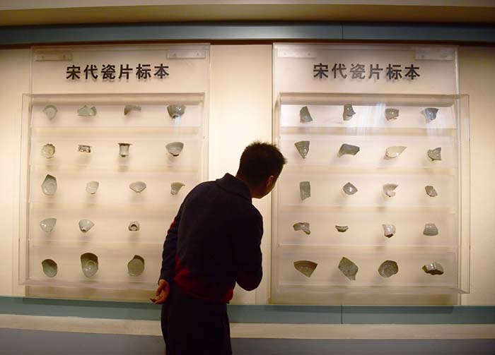 2月26日,在位于耀瓷小鎮(zhèn)內(nèi)的耀州窯遺址內(nèi),一名游客在參觀宋代瓷片標(biāo)本! ⌒氯A社記者邵瑞 攝