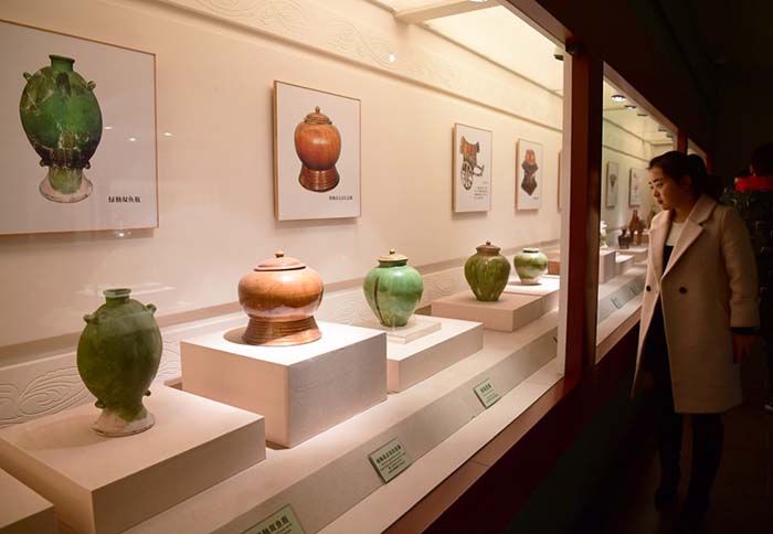 2月26日,一名游客在耀州窯博物館唐代耀瓷的展區(qū)內(nèi)參觀! ⌒氯A社記者邵瑞 攝