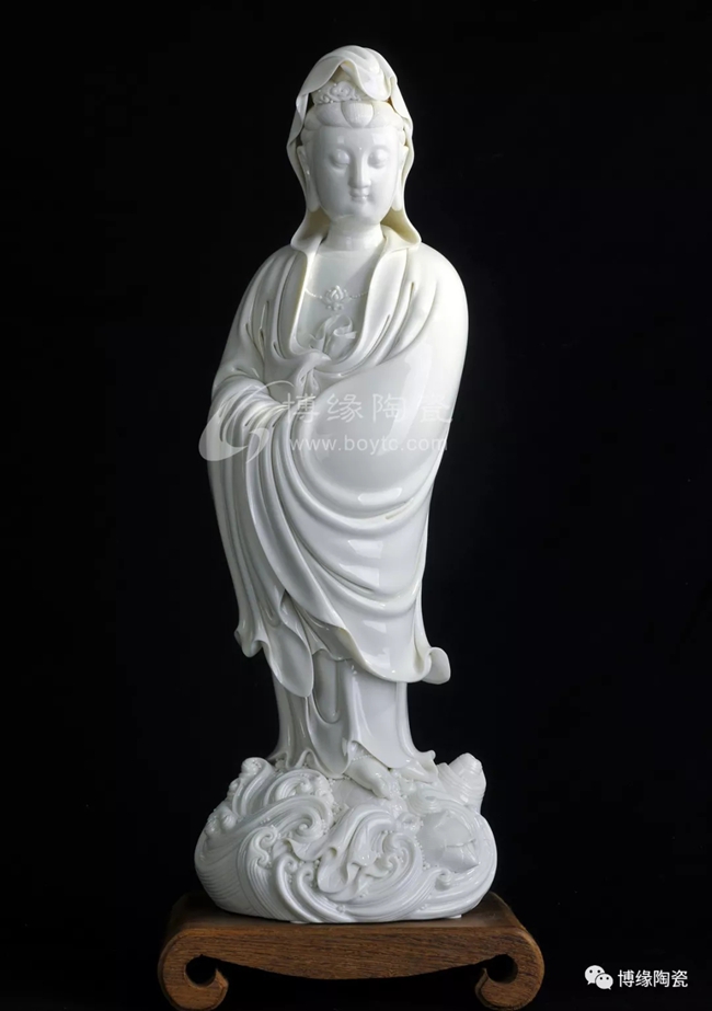德化白瓷的特點(diǎn)是胎釉中的Feo含量特別高,燒成時(shí)采用中性氣氛,所以德化白瓷就比唐宋北方白瓷和景德鎮(zhèn)同期生產(chǎn)的白瓷釉色更純凈。