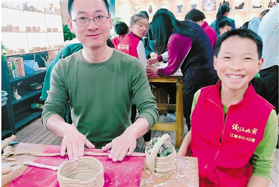 擺在我們面前的有好多胚模,分給各個(gè)小記者們,做法也有很多種,有手工制作的也有機(jī)制的,老師今天教小記者們一種“搓條法”的花瓶制作,然后陶泥在小朋友手里開始慢慢地搓成條狀,圍在事先印好的圖形上,越疊越高,形成一個(gè)花瓶,這就是“搓條法”,然后給我整形,刻花,上釉,這幾個(gè)步驟給我打扮完成后他們狠心把我放進(jìn)了1150℃的燒爐里歷練了10多個(gè)小時(shí),我從一個(gè)丑小鴨飛升變成了白天鵝,打開爐門的一剎那我迫不及待地完美綻放了我自己。小記者們在老師的幫助下看到自己的作品感到非常驚艷,而我亦是靜悄悄地在那里釋放屬于我自己的那份美,以及中華五千年的悠悠歷史文化沉淀!
