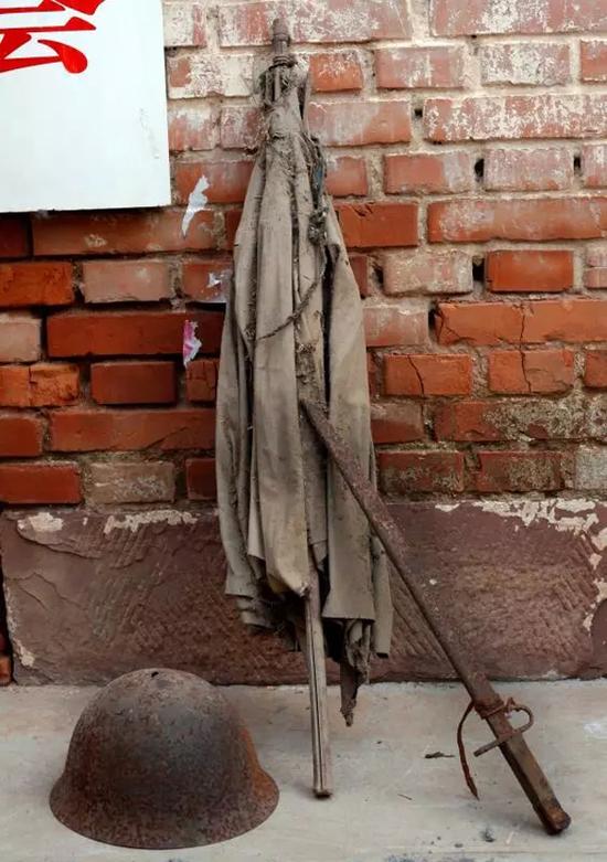 同時發(fā)現(xiàn)的日軍頭盔、軍刀