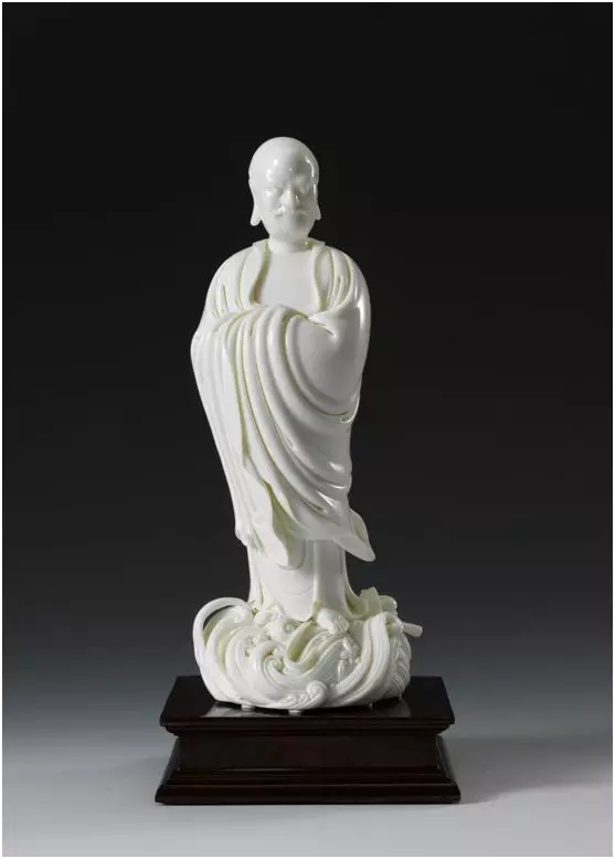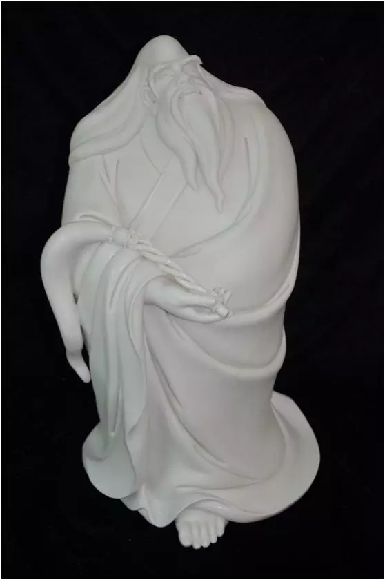 明代德化窯在元青白瓷的基礎(chǔ)上發(fā)展到一個(gè)新的歷史高峰,這種特殊的“白瓷”——瓷質(zhì)致密,胎釉純白、渾然一體、潔潤(rùn)滑膩、如脂似玉,整體晶瑩剔透、叩擊如磬,其釉色純凈,釉面晶瑩光亮,乳白似象牙,美不勝收,進(jìn)一步將追求玉器質(zhì)感的完美性發(fā)展到歷史的巔峰,代表了當(dāng)時(shí)白瓷生產(chǎn)的最高水平,有“象牙白”、“豬油白”之美稱,西方則稱之為“中國(guó)白”(Blanc de chine)、“世界白瓷之母”。