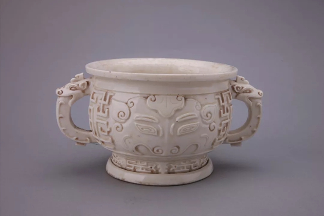 △清代德化窯白釉饕餮紋瓷爐(川博館藏)