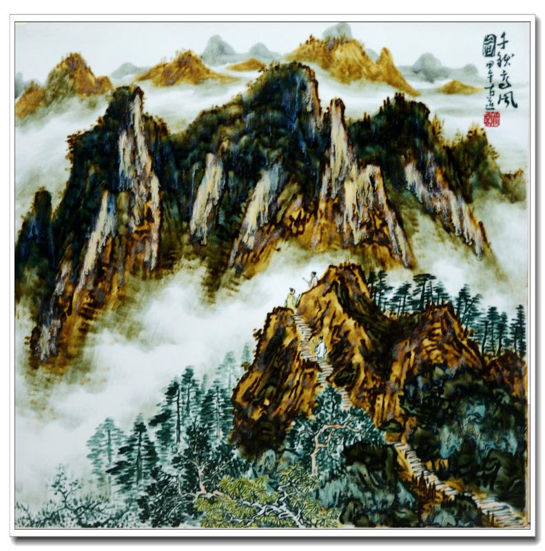 古絲綢之路以中國的陶瓷、茶葉、絲綢為主要出口商品。高溫顏色釉(窯變)、玲瓏、粉彩、青花為景德鎮(zhèn)四大名瓷。高溫顏色釉在繪畫和燒制可謂四大名瓷中也是最難把握的工藝,俗語有“窯變無雙”,經(jīng)過1380度的高溫?zé)?產(chǎn)生鬼斧神工的奇特效果,千年瓷都景德鎮(zhèn)的上品陶瓷歷來都是西方政要名人和高端博物館藝術(shù)館的至愛。著名青年畫家謝古道的國畫作品,傳承了宋代院體畫山水的極高水平。在目前景德鎮(zhèn)山水陶瓷高溫顏色釉(窯變)創(chuàng)作上,除工藝美術(shù)大師車一鳴之外,謝古道的陶瓷窯變作品在國內(nèi)外瓷界可謂堪稱一絕,有流趟藝術(shù)的美譽(yù)。