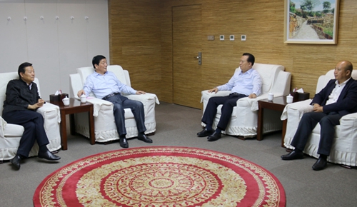 銅川市委書記楊長亞(左二)專程接待了西安翻譯學(xué)院董事長張水平(左三)一行并親切座談