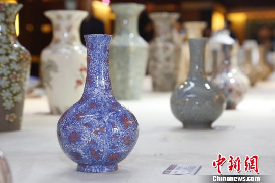 中新網(wǎng)鄭州5月22日電(記者 董飛)國家級(jí)非物質(zhì)文化遺產(chǎn)代表性項(xiàng)目“當(dāng)陽峪絞胎瓷燒制技藝”作品展及研討會(huì)22日在鄭州舉行。絞胎瓷有著“瓷中君子”的美譽(yù)。當(dāng)日展出了逾百件絞胎瓷珍品。