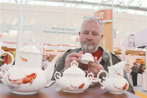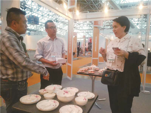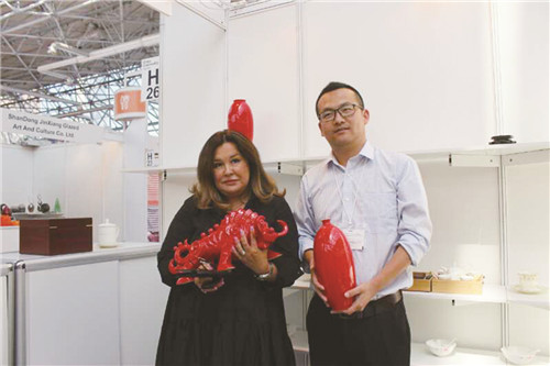開幕式當天,記者在現(xiàn)場看到,淄博陶琉展區(qū)人頭攢動,莫斯科市民、經(jīng)銷商在這里流連忘返,對淄博陶瓷的美輪美奐不時發(fā)出驚嘆。據(jù)了解,在山東省陶瓷協(xié)會、淄博市陶瓷行業(yè)協(xié)會的組織下,華光陶瓷、硅元瓷器、泰山瓷業(yè)都是連續(xù)三次參加中國消費品(俄羅斯)品牌展,在2016、2017參展的基礎上,2018年展會他們都針對俄羅斯市場做了充分的準備,從造型設計、色彩選擇、消費習慣等方面,推出了一批陶琉精品,受到俄羅斯市民和經(jīng)銷商的青睞。當天上午,一位俄羅斯女士就像熟悉的老朋友徑直走進淄博陶琉展區(qū),當即選購了華光陶瓷出品的一套富貴牡丹餐具,一套流金歲月餐具。付款打包,沒用10分鐘。據(jù)了解,這位女士在去年的展會上,就對華光陶瓷愛不釋手,曾選購過一套牡丹餐具。今年聽說華光陶瓷來參展,她又第一時間趕來選購自己心儀的產(chǎn)品。華光陶瓷設計研發(fā)的福魚賀歲咖啡具也備受俄羅斯消費者歡迎,不到一上午的時間就已售罄。硅元瓷器此次展會推出了包括日用瓷、藝術(shù)瓷共二十幾個品類,國瓷國禮國范,中國元素中國特色,充分展現(xiàn)了“淄博陶瓷當代國窯”風采,深受俄羅斯消費者的喜愛。莫斯科紅寶石展覽中心副總經(jīng)理阿麗娜女士一眼就相中了硅元瓷器的產(chǎn)品,她一次就購進了“紅牛”雕塑和“怡然”花瓶兩件。泰山瓷業(yè)此次展會帶來了一批擁有國家發(fā)明專利的水晶瓷、水晶骨瓷、水晶玉瓷陶瓷精品,晶瑩剔透,溫潤如玉,在展會上一亮相,就引來無數(shù)贊賞的目光。剛剛斬獲2018中國旅游商品大賽金獎的金祥琉璃是第一次參加中國消費品(俄羅斯)品牌展,沒想到,消費者的接受度很高,他們對琉璃的歷史、制作工藝充滿了好奇。此次嘗試,讓金祥琉璃對開拓俄羅斯市場更加充滿了信心。