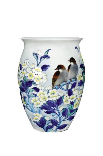 青花斗彩《梨花小鳥》