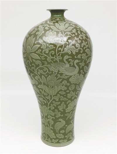 越窯青瓷刻花梅瓶《荷塘雅韻》