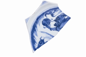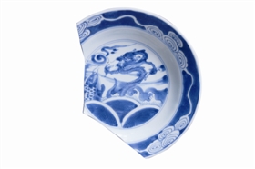 由此可見,這幅瓷畫中的“鯉魚”與“蒼龍”,是分別借鑒明代紋樣樣式,組合而成一個(gè)新瓷畫品種。明代時(shí),“鯉魚”和“蒼龍”一個(gè)應(yīng)用于民窯,一個(gè)應(yīng)用于官窯,一般不會(huì)處在同一幅瓷畫之中。清代對(duì)龍紋的禁用尺度放寬了,四爪以下的龍紋允許民間使用,才有可能出現(xiàn)魚龍同框的現(xiàn)象。