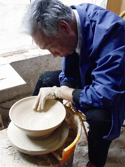 聞長(zhǎng)慶在拉坯 (燒制秘色瓷流程之一)