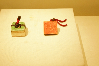 “陶瓷印”是“陶印”和“瓷印”的統(tǒng)稱,其制作分為制坯(鈕)、素?zé)、刻篆、上釉、燒制成印等流程。陶印以泥刻就印章后火范而成,瓷印為瓷質(zhì)印章,約始于唐宋,多見(jiàn)于宋元。