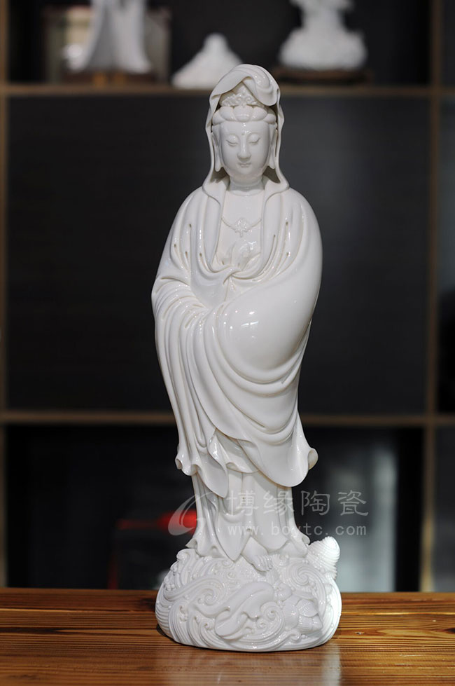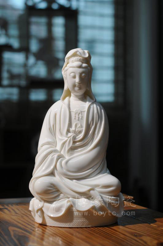 德化瓷的制作方法可分兩種,一是選用優(yōu)質(zhì)的高嶺土直接塑造成型,一是翻制模具后再注漿或拓印成型。德化瓷一般在土坯干后再根據(jù)需要決定是否上釉,而后放入窯中,在攝氏一千多度的高溫中燒制出成品。