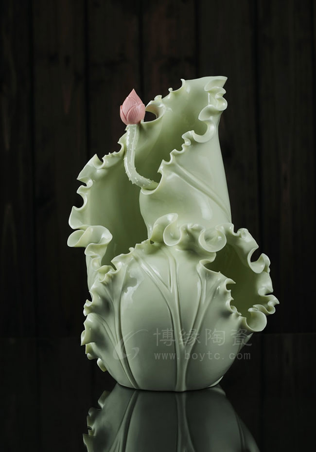 德化陶瓷業(yè)最初是從燒制日用器皿開始的,后來由于瓷塑藝術(shù)的顯著成就,器皿類的產(chǎn)品則比較少的受人關(guān)注。器皿類陶瓷產(chǎn)品在德化一直大量生產(chǎn),供內(nèi)外銷的需求,到了明代已經(jīng)逐步形成自己的造型和裝飾體系,成為中國傳統(tǒng)陶瓷的一個(gè)重要組成部分。德化陶瓷器皿類的產(chǎn)品從功能方面分類,大致可以分為日常生活用具,包括盤、碗、杯、碟、罐、壺、文具、燈具和燭臺等;陳設(shè)裝飾和供器包括瓶、尊、觚和鼎、爐、豆等。這兩大類器物,造型樣式古樸嚴(yán)整,傳統(tǒng)意味濃厚。日常生活用器的造型多沿用傳統(tǒng)形式加以演變,或是模擬自然形態(tài)加以整合,設(shè)計(jì)者考慮到造型需要適應(yīng)陶瓷材料和技術(shù)的特點(diǎn),構(gòu)成了符合其屬性與特征的形式語言。德化陶瓷造型與裝飾明顯地看到受商、周青銅器和玉器的影響,同時(shí)還有明代宣德爐的意味,特別是爐的造型和裝飾更為顯著。德化陶瓷優(yōu)秀的傳統(tǒng)造型筒形雙螭壺、獅首筒形瓶、象耳弦紋尊、犀角杯等,都是其他產(chǎn)區(qū)很少見的獨(dú)特的樣式。