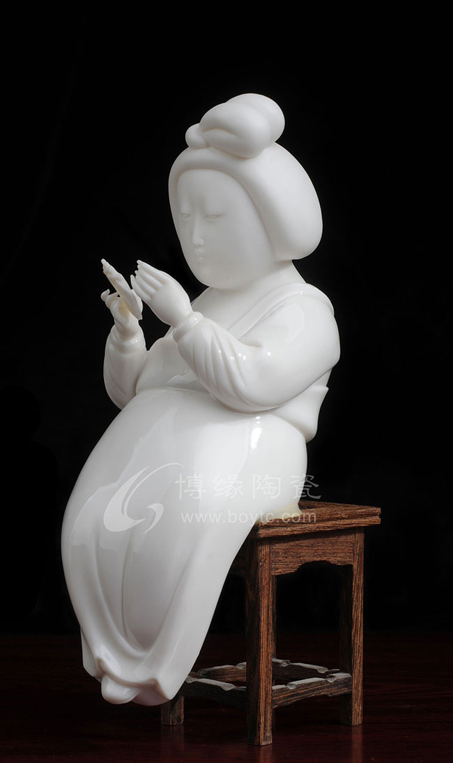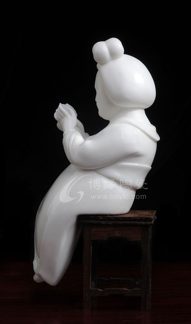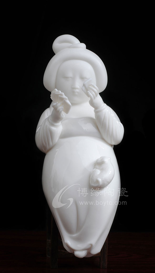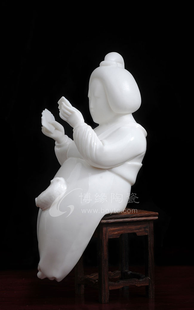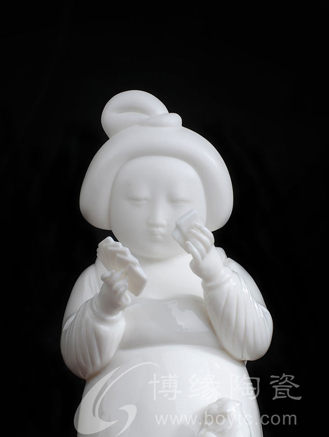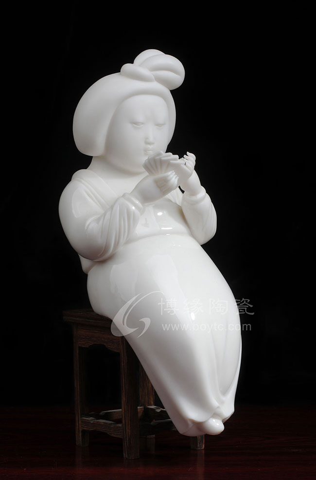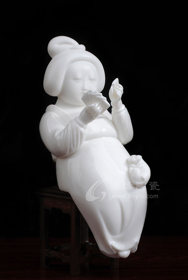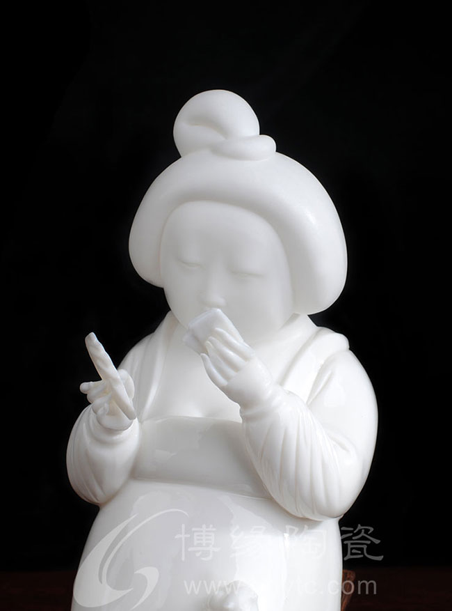 作品刻畫細(xì)致,瓷質(zhì)細(xì)膩,面部表情生動(dòng),將享受悠閑時(shí)光的陽光心態(tài)刻畫得細(xì)致入微。