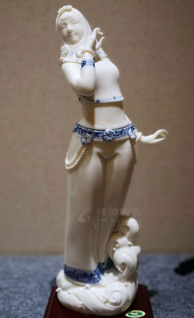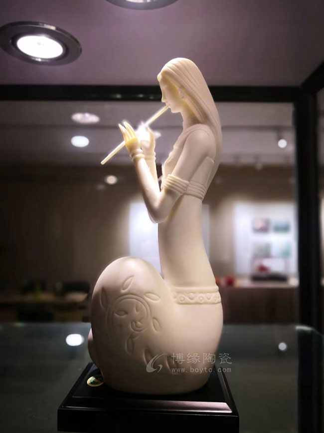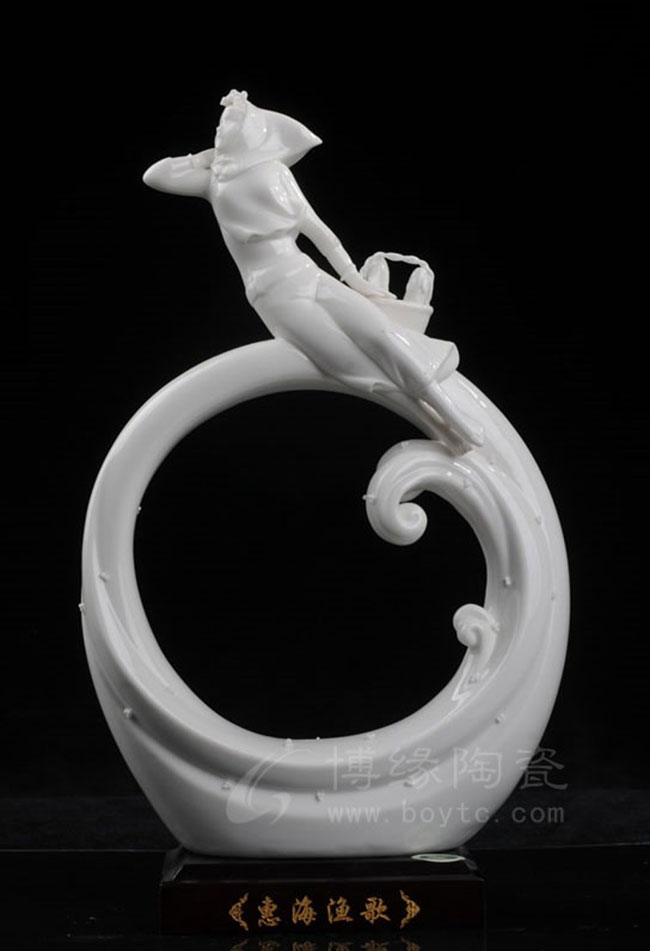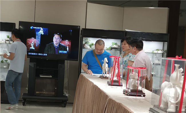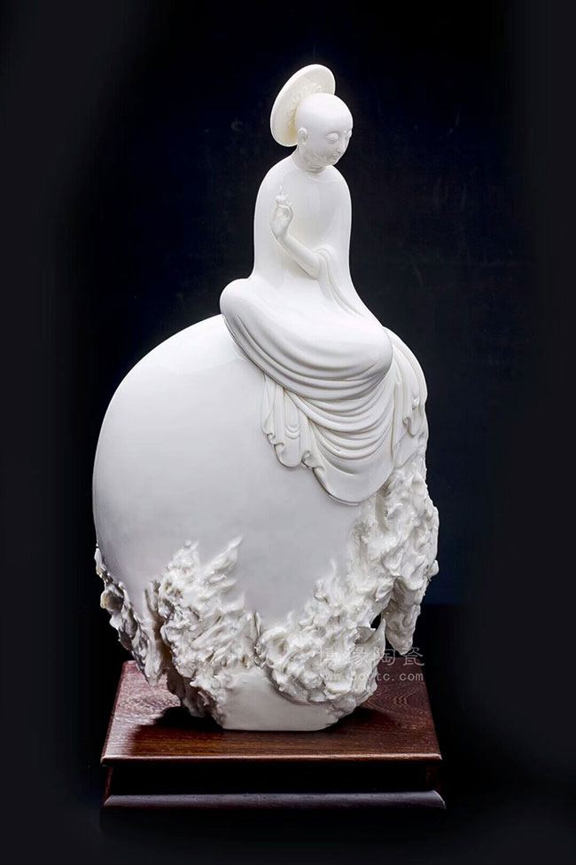 策展人譚偉彬介紹:“德化瓷的作品在繼承傳統(tǒng)寫實的基礎(chǔ)上,吸收了西方的技藝手法,以大雕塑的流暢的線條感、體積感、以夸張的形式增強它的藝術(shù)感染力。我們傳統(tǒng)工藝如果像德化瓷這樣既繼承傳統(tǒng),又可以有時代氣息的藝術(shù)作品,傳統(tǒng)工藝美術(shù)的路子會越走越寬。”