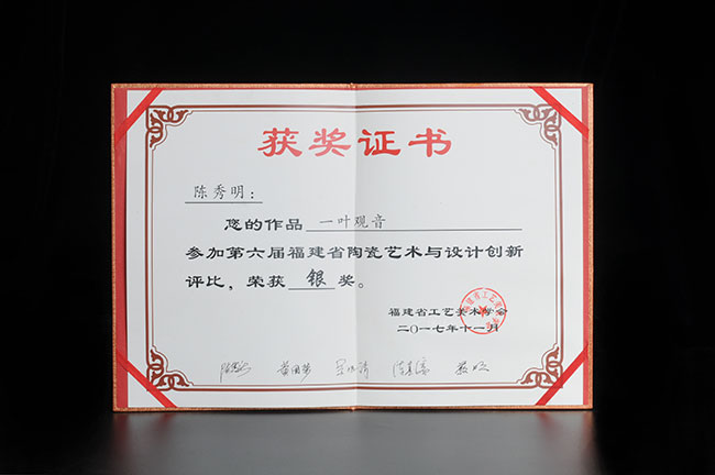 《一葉觀音》獲第六屆福建省陶瓷藝術與設計創(chuàng)新銀獎