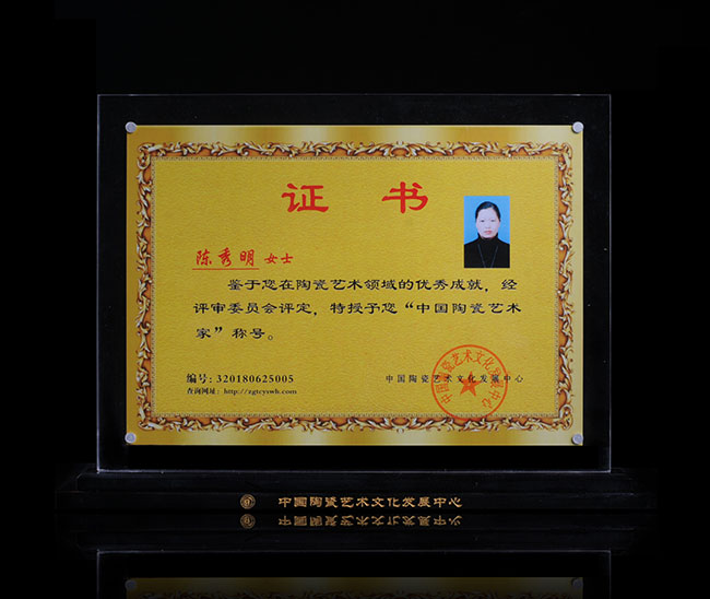 陳秀明榮獲“中國陶瓷藝術家”稱號