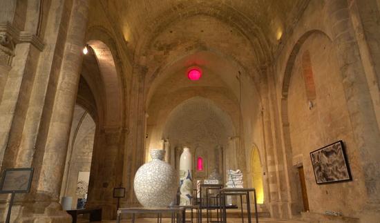 這個(gè)博物館有非常悠久的歷史,在法國(guó)是享有很高的精神地位,它是在普羅旺斯的一座十二世紀(jì)天主教教堂所改建的博物館,教堂在做博物館之前是一座建立在公元1-5世紀(jì)的羅馬式村莊的遺跡之上的修道院,修道院室外是一大片種著薰衣草、小麥等各種植物的土地,這些土地的格局在千年之間一直被守護(hù)著直到現(xiàn)在還保持著當(dāng)初的模樣,這座教堂最著名的是由法國(guó)國(guó)寶女藝術(shù)家-奧瑞麗·內(nèi)穆?tīng)柛?jìng)標(biāo)設(shè)計(jì)的彩繪玻璃,陽(yáng)光透過(guò)打在質(zhì)地溫潤(rùn)、形狀卻是殘片的白明的中國(guó)陶瓷作品上,呈現(xiàn)出溫潤(rùn)透光的紅色。