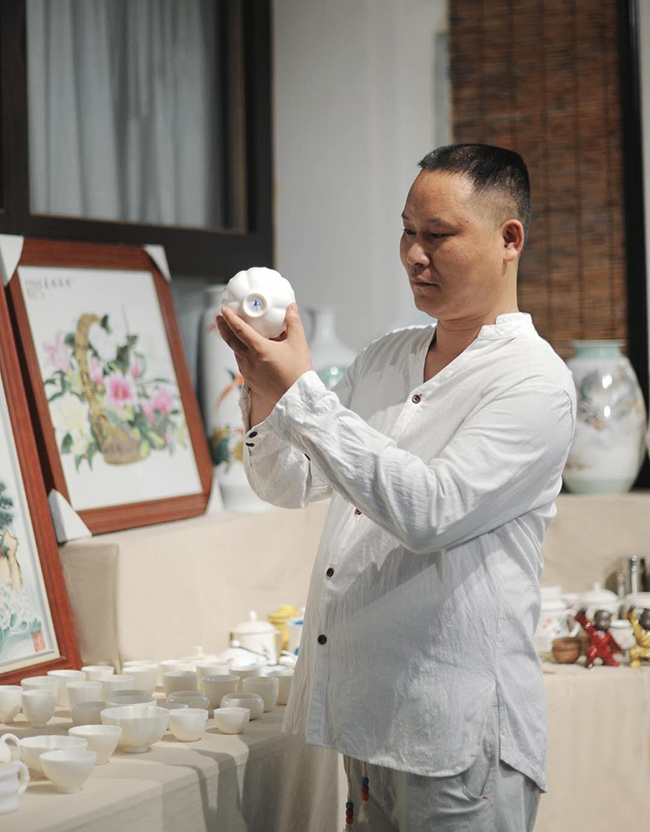 徐孝豐,1975年出生于瓷都德化,中國陶瓷藝術(shù)名家、福建省工藝美術(shù)師、中國陶瓷藝術(shù)文化發(fā)展中心會(huì)員、福建省工藝美術(shù)學(xué)會(huì)會(huì)員,德化誠祥德豐陶瓷有限公司藝術(shù)總監(jiān)。
