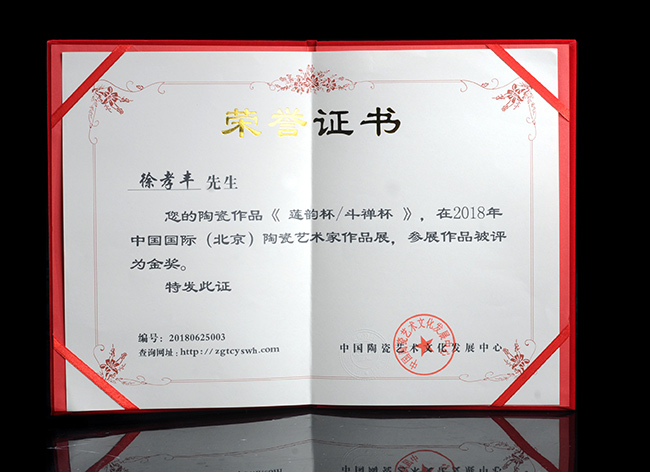 作品《蓮韻杯/斗禪杯》在中國北京陶瓷藝術(shù)作品展中被評(píng)為金獎(jiǎng)