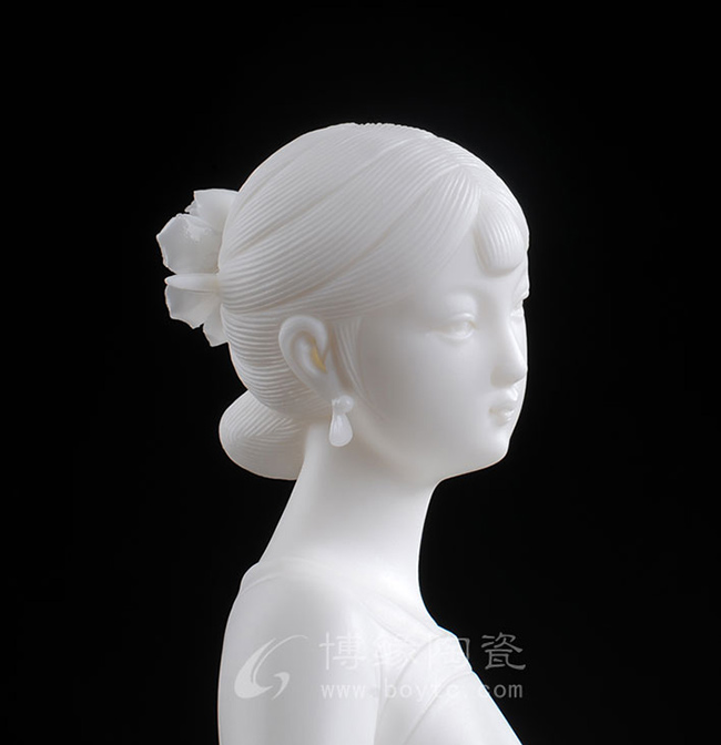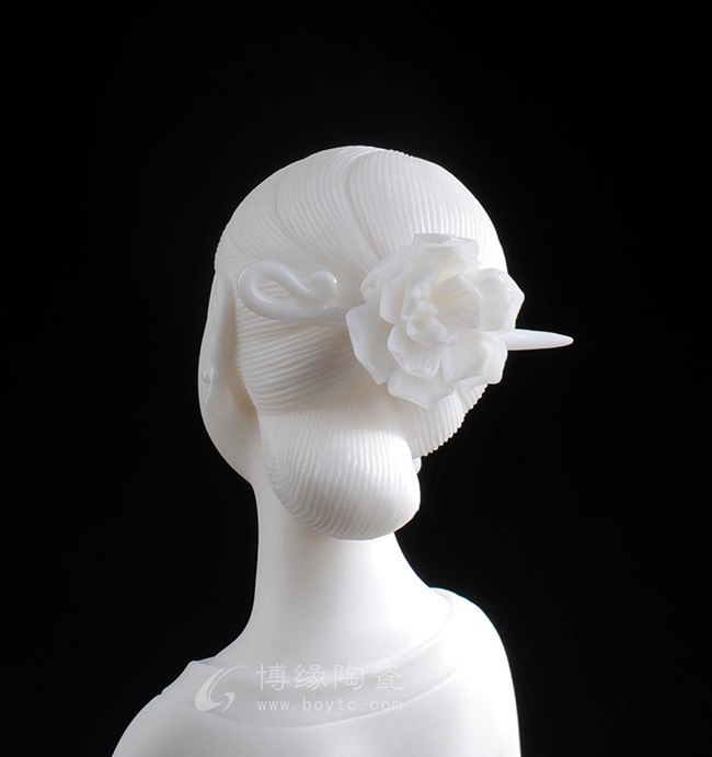 花朵精雕細(xì)刻,栩栩如生,發(fā)髻一絲不茍,形象生動(dòng)逼真,將女子的溫婉描述的淋漓盡致。