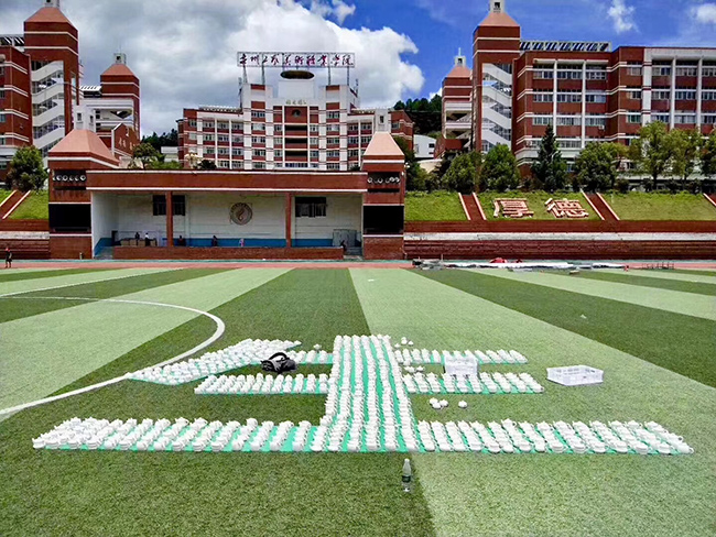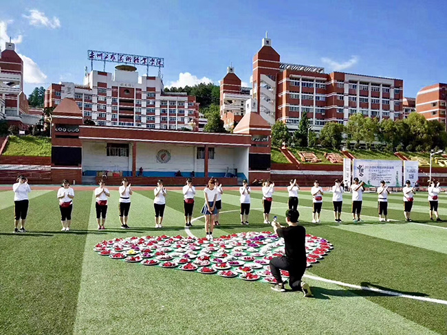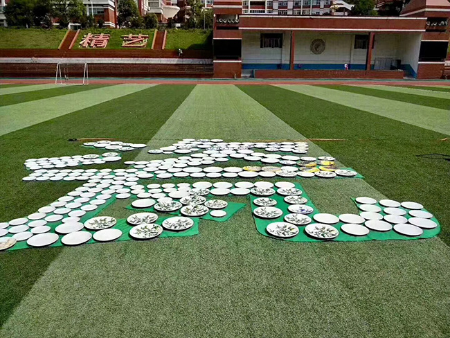 本次活動的主題“瓷愛一生”,“瓷愛”兩字,用瓷盤520個組成,“一生”兩字用陶瓷壺1314個,象征一生一世,一生幸壺(福)。