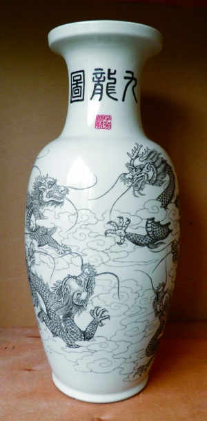 1964年,朱友麟去世,茅子芳這個“編外徒弟”無法再行請教,只好走上了“修行靠個人”的路,在繼承傳統(tǒng)刻瓷技藝的基礎上,吸收了素描、刺繡、金石、攝影等藝術風格,創(chuàng)出了具有自己獨特風格的刻瓷作品。“刻瓷就是在燒制好的瓷器上寫字作畫的一門技藝,是以刀代筆在瓷板、瓷瓶、瓷盤上,表現(xiàn)素描、線描、中國畫及書法的藝術,它將繪畫與鏨刻結合,被譽為在瓷面上‘繡花’。”茅子芳說,傳統(tǒng)的刻瓷都是在白瓷上刻制,刻完以后再涂上顏色,但他另辟蹊徑,自上個世紀七十年代起首創(chuàng)深色釉瓷來刻制,“不用上色,光是根據不同的工具、刀法、疏密,就可以創(chuàng)造出至少五種色調的變化。”