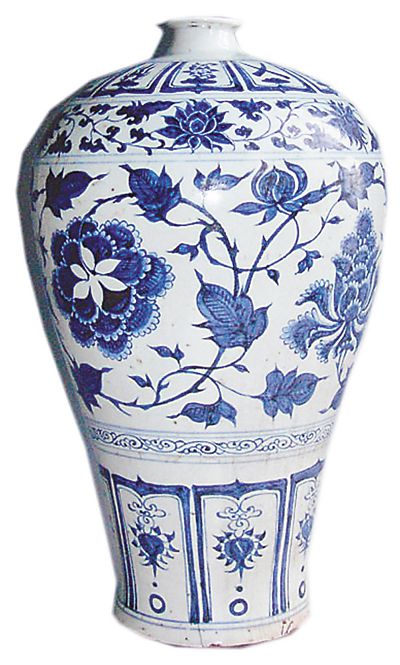 值得注意的是,蒙元政權(quán)強(qiáng)力推進(jìn)的青花瓷并未因王朝的更迭而失落。在明朝建立之后,青花瓷不僅沒(méi)有消失,而且越來(lái)越豐富多彩。元代青花瓷主要供北方草原民族的統(tǒng)治者以及海外貿(mào)易的需要,而從明代開(kāi)始,對(duì)青花之美的喜愛(ài)已成為人們共同的追求。明代以后景德鎮(zhèn)民窯大量生產(chǎn)日用青花瓷具,這些青花瓷具的追捧者是中原的百姓。