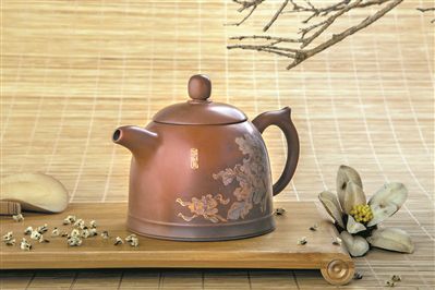 同時(shí),因?yàn)檑枧d陶泥料資源豐富,目前完全不需要摻雜其他任何物質(zhì),也不會(huì)用其他泥料來(lái)假冒,絕對(duì)綠色環(huán)保和原生態(tài)。另外,坭興陶泥料質(zhì)地細(xì)膩,可塑性強(qiáng),既適合于做小件,也適合于做大器,更可以進(jìn)行雕花、刻字等多種裝飾。所以,即便是做茶器,吳瑩也會(huì)根據(jù)坭興陶本身的特點(diǎn)來(lái)發(fā)揮。因此,很多坭興陶壺上都會(huì)有精美的雕花和刻字。她還設(shè)計(jì)《荷塘月色》的茶具套裝,茶盤(pán)做成荷葉的樣子,蓋碗則設(shè)計(jì)成蓮蓬的款式,看起來(lái)古雅而富有詩(shī)意。“茶盤(pán)不泡茶又可以立起來(lái)擺放,這是一個(gè)很好的藝術(shù)品,還可以獨(dú)立作為果盤(pán)使用。”