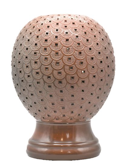 除此之外,吳瑩還根據(jù)坭興陶泥料細(xì)膩的特點(diǎn)設(shè)計(jì)了《富甲一方》這樣的鏤空作品,也非常具有個(gè)性。