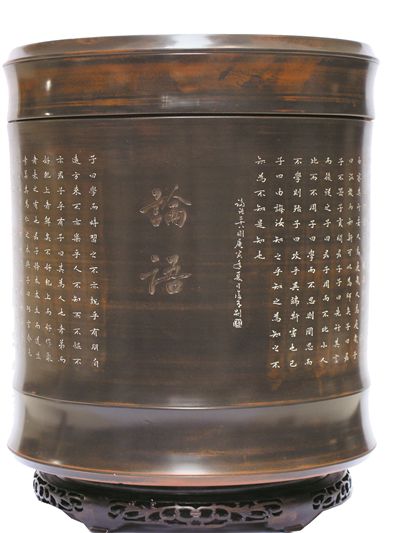 像獲得2010年中國(guó)工藝美術(shù)“百花杯”金獎(jiǎng)的《步步高》茶葉罐就很能體現(xiàn)吳瑩的文化底蘊(yùn)。在造型上,作品以一節(jié)竹子為創(chuàng)意,同時(shí)刻印最能代表中國(guó)文化智慧的《論語(yǔ)》節(jié)選,蓋子上則是瓦當(dāng)文。“作品命名來(lái)自粵曲《步步高》,是今天人民物質(zhì)文化生活不斷前進(jìn)的見(jiàn)證。”