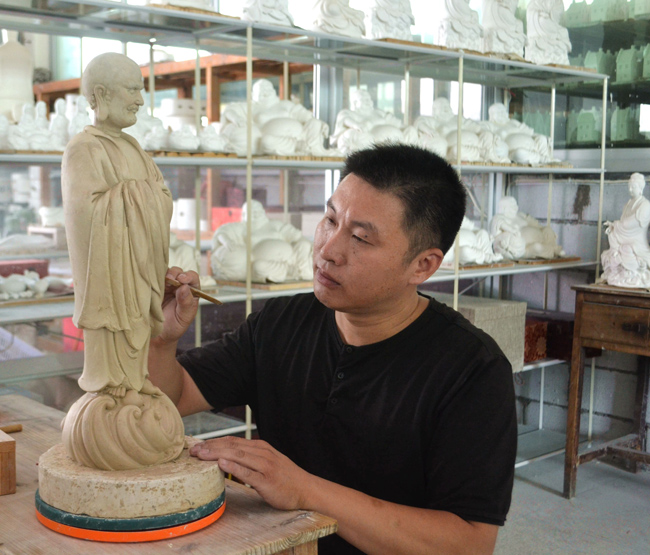 蘇聯(lián)旺,1974年出生于福建德化,中國陶瓷藝術(shù)家、全國陶瓷行業(yè)技術(shù)能手、福建省工藝美術(shù)師、泉州市工藝美術(shù)大師、中國東方文化研究會(huì)文教藝術(shù)專業(yè)委員會(huì)會(huì)員、中國陶瓷藝術(shù)文化發(fā)展中心會(huì)員、福建省陶瓷行業(yè)協(xié)會(huì)會(huì)員、德化縣聯(lián)旺陶瓷研究所藝術(shù)總監(jiān)。從小深受瓷都德化千年的傳統(tǒng)陶瓷文化熏陶,耳濡目染的他對(duì)瓷藝產(chǎn)生了濃厚的興趣 ,也種下了陶瓷之緣的種子。先后師從福建省工藝美術(shù)大師鄭志德、溫清民大師等,學(xué)習(xí)傳統(tǒng)與現(xiàn)代人物瓷塑。為了提高瓷塑技藝,1999年到中央工藝美術(shù)學(xué)院陶瓷藝術(shù)設(shè)計(jì)系繼續(xù)深造,在著名雕塑家何燕明、邱耿鈺等教授的悉心指導(dǎo)下,雕塑技藝進(jìn)一步提升。二十多年來他不斷地探索瓷塑技藝,刻苦尋求陶瓷藝術(shù)之真諦,2013年,創(chuàng)辦了蘇聯(lián)旺藝術(shù)工作室,在創(chuàng)辦工作室期間,多次參加全國、省、市現(xiàn)場(chǎng)雕塑創(chuàng)作比賽,其中在2015年參加中國技能大賽——首屆“古窯杯”陶瓷成型職業(yè)技能全 國總決賽,獲得“全國陶瓷行業(yè)技術(shù)能手”榮譽(yù)稱號(hào)。功夫不負(fù)有心人,經(jīng)過多年虛心的學(xué)習(xí)與創(chuàng)作,創(chuàng)作出數(shù)十款佳作,所創(chuàng)作品,其造型務(wù)實(shí)、嚴(yán)謹(jǐn)、質(zhì)感強(qiáng)烈、線條優(yōu)美,并在全國各評(píng)比大賽中 多次獲獎(jiǎng)。作品深受中外收藏家、藝術(shù)家青睞,數(shù)件作品被博物館、寺院、收藏家等收藏,其作品具有較高的鑒賞和收藏價(jià)值。