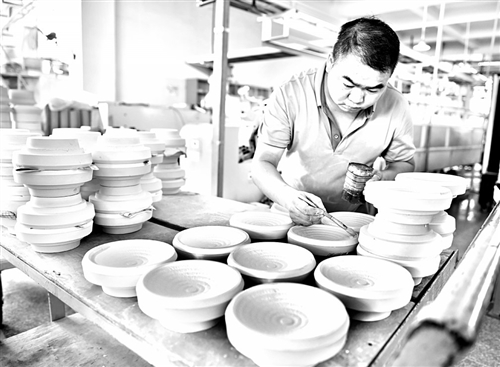 在德化陶瓷的出口單上,日用陶瓷是最重要的產(chǎn)品之一,從最初的小作坊到如今的現(xiàn)代窯爐,泥巴變身瓷碗,走上全球各地的餐桌,裝點(diǎn)了各色美食。近日,海都記者前往德化企業(yè)車間,傾聽(tīng)陶瓷業(yè)界聊一聊“一帶一路”倡議提出這5年,德化瓷碗的環(huán)球游記。(N海都記者 徐錫思 田米 文/圖)
