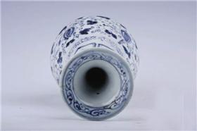 這件玉壺春瓶身上的纏枝花卉,以荷花瓣、蕉葉、下垂如意云紋等組成,均是元代青花中較為流行的裝飾紋樣,說明此瓶應為元代成熟期的代表,屬景德鎮(zhèn)窯口的產品。由于山東地區(qū)發(fā)現元青花頗為少見,而這件玉壺春瓶瓶口內的卷枝紋后世也很少效仿制作,故而十分珍貴。
