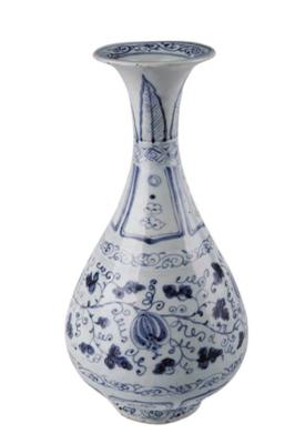 玉壺春瓶又叫玉壺春壺,它的造型是由唐代寺院里的凈水瓶演變而來。基本形制為撇口、細頸、圓腹、圈足。玉壺春瓶的造型定型于北宋時期,在當時是一種裝酒的實用器具,后來逐漸演變?yōu)橛^賞性的陳設瓷,是中國瓷器造型中的一種典型器型。