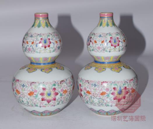 乾隆年制款粉彩纏枝花卉葫蘆瓶艷艷深圳藝海國(guó)際