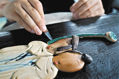 曾力告訴記者,從前的“石灣公仔”大多以動物形態(tài)或人形為創(chuàng)作靈感。但這種非遺級別的藝術品是否只能在博物館里供人欣賞呢?曾鵬表示不同意。“我們第一個轉(zhuǎn)變就必須從理念開始,打破傳統(tǒng)思維的限制,加入抽象思維和空間思維,把能讓更多人理解的藝術形象塑造出來。”曾鵬說,比如在徒手制作同一款人形陶藝時,直線與曲線的運用完全可以走現(xiàn)代設計的法則,“我們不需要100%復制出傳統(tǒng)的珍品,那些刻意營造的‘不完美’,其實才是現(xiàn)代人追求的‘不經(jīng)意’的藝術趣味。”(見圖一、二)