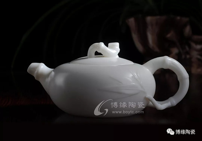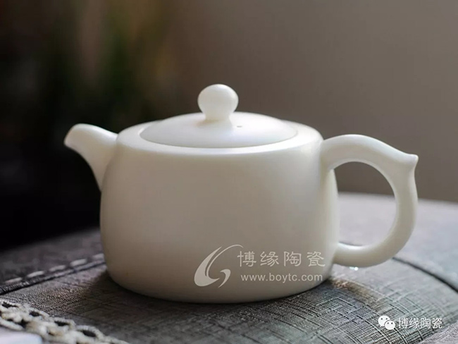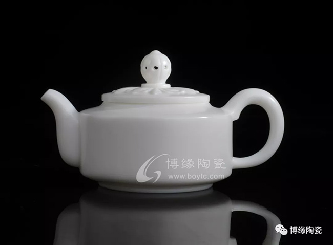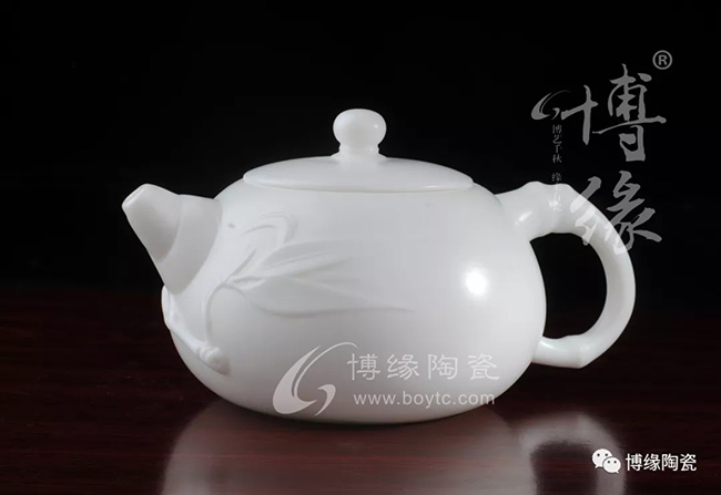 德化白瓷壺隨著德化白瓷產(chǎn)品種類的發(fā)展應運而生,瓷質作乳白色,兼有雕塑藝術的陳設瓷壺,多用貼花、印花、堆花作裝飾,受到人們的青睞。
