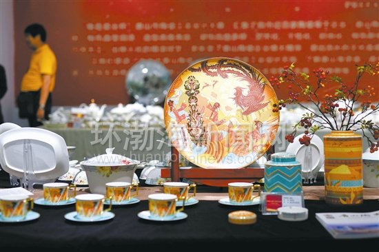 作品《重生》由設(shè)計(jì)師趙躍設(shè)計(jì)。作品中騰飛的鳳凰采用特殊工藝來(lái)實(shí)現(xiàn)其身體在順光與逆光情景中的光變效果;波光粼粼的湖水波紋在浮雕工藝中得以立體的展現(xiàn);點(diǎn)綴在整幅畫(huà)面中的亮金,在陽(yáng)光的映射下閃耀奪目;產(chǎn)品各器型的金邊均通過(guò)精心處理,減少在日常使用中的磨損;為了能更好地延伸畫(huà)面的寓意,載體選用了世界公認(rèn)的高檔瓷種——唐山骨瓷。“看這道藍(lán)色條紋,設(shè)計(jì)靈感就來(lái)自咱唐山的環(huán)城水系。”高繼輝拿起一個(gè)咖啡杯介紹說(shuō)。