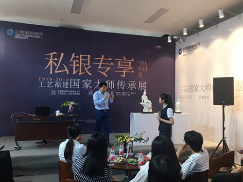 “認(rèn)得當(dāng)下真——2018工藝福建國(guó)家大師傳承展”正在福州建行大廈展出中。9月29日,建行私人銀行舉辦“認(rèn)得當(dāng)下真”私銀專享·大師面對(duì)面——陶瓷專場(chǎng)講座活動(dòng),中國(guó)工藝美術(shù)大師連紫華為大家?guī)?lái)一場(chǎng)名為《德化白瓷的古往今來(lái)》的主題講座。