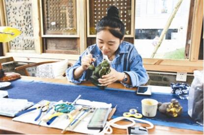 今年6月,廖莎從四川商務(wù)職業(yè)學(xué)院環(huán)境藝術(shù)設(shè)計(jì)專業(yè)畢業(yè)之后,就來(lái)到幸福公社開(kāi)始“創(chuàng)客”生涯。廖莎坦言,一方面是因?yàn)樽约旱募揖妥≡谇嘞兼?zhèn),對(duì)這片土地有著深厚的情感;另一方面,則是看中了這里的創(chuàng)新創(chuàng)業(yè)環(huán)境。“今年4月,我在朋友的邀請(qǐng)下來(lái)這里玩了一次,一下子就被幸福公社的氛圍、環(huán)境吸引住了,這里不像大城市那樣喧囂,十分寧?kù)o,我可以做自己喜歡的設(shè)計(jì)和手工。”