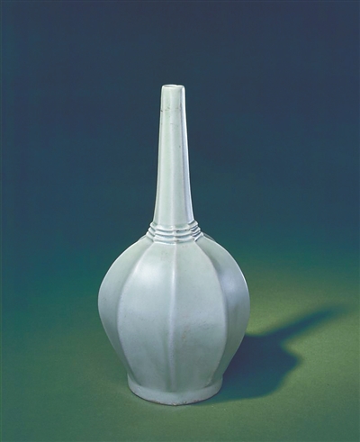 唐秘色八棱凈瓶。(故宮博物院藏)