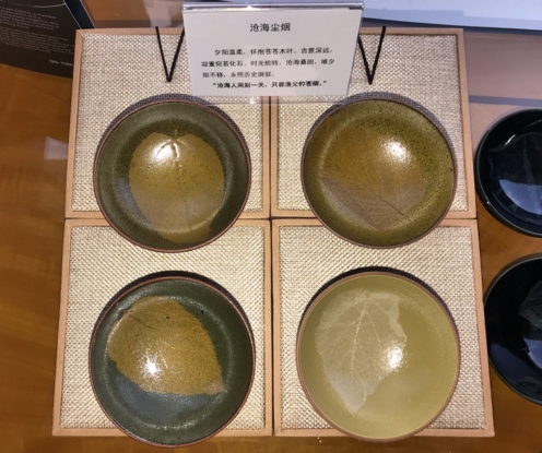 靜象的木葉瓷器也突破性地實(shí)現(xiàn)了多色系的藝術(shù)表達(dá)。靜象文化團(tuán)隊(duì)中,具有十年木葉盞燒制經(jīng)驗(yàn)的景德鎮(zhèn)青年匠人文丘,在帶領(lǐng)團(tuán)隊(duì)進(jìn)行創(chuàng)新燒制的過程中,探索出靜象木葉瓷器獨(dú)特的色彩: 冰藍(lán),敦煌,茶葉沫,柿子紅……一件件新作品問世,賦予了這門古老技藝多姿多彩的靈魂。